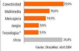 16,6% de los mensajes. La mensajería, tanto SMS como MMS, ocupa el tercer